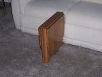 Here is my RV table. It is 18″ wide, 36″ long fully opened and 18″ high. Birch was my wood choice, and I stained it a cherry flavor to match my motor home.