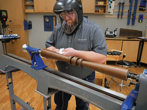Hard wax oil or a shellac-based friction polish applied on the lathe are two quick finish options for this project’s pedestal. Or wait until after final assembly and spray it with an aerosol finish instead. |